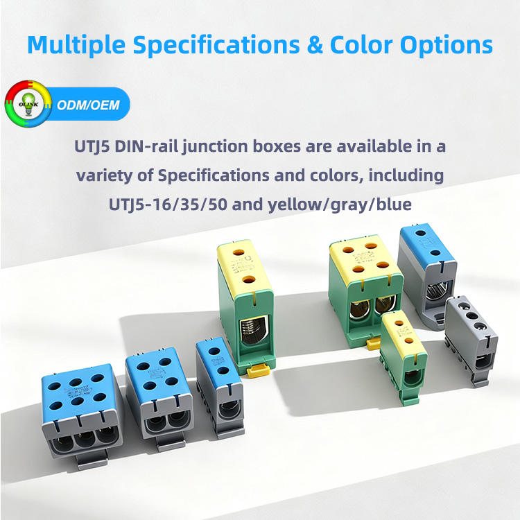 Bloque de terminales de tornillo para carril DIN OLINK UTJ5 de alimentación industrial - Contactos de aluminio, 220 A, barra colectora de plástico
