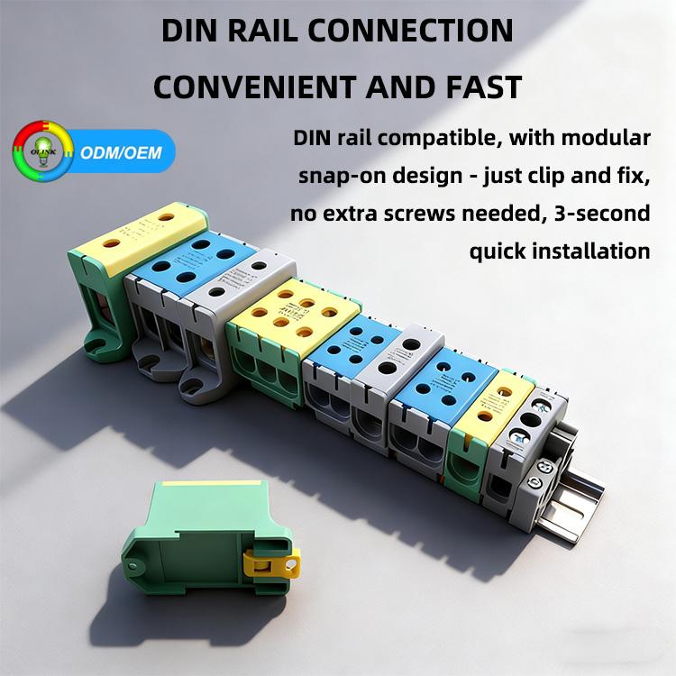 Bloques de terminales de tornillo para carril DIN, barrera eléctrica de conexión a tierra de 220 A para automoción CC - 3 capas, multiconexión, contacto de aluminio