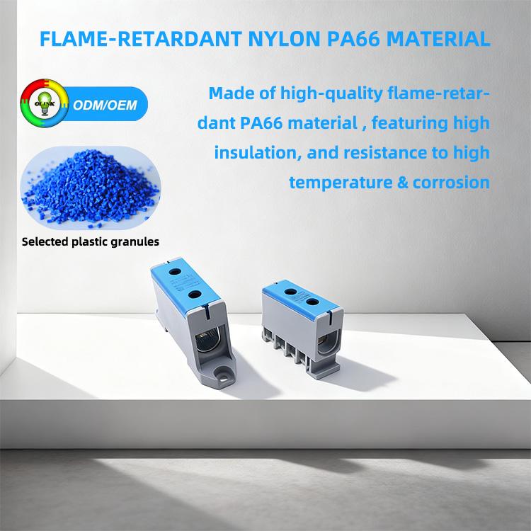 Los conductores de aluminio reforzado ofrecen ligereza, gran sección transversal y excelente resistencia a la corrosión. El nuevo nailon PA66 soporta altas temperaturas y presiones, manteniendo un rendimiento óptimo en diversos entornos exigentes. Con tornillos hexagonales, afloje los tornillos antes de cablear y apriételos después de conectar los cables para completar la conexión, garantizando así una unión segura y duradera.