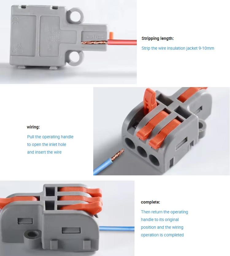 Múltiples opciones de conexión: de 2 a 5 pines disponibles (de 1 entrada/2 salidas a 1 entrada/5 salidas), admite empalmes en múltiples posiciones.
