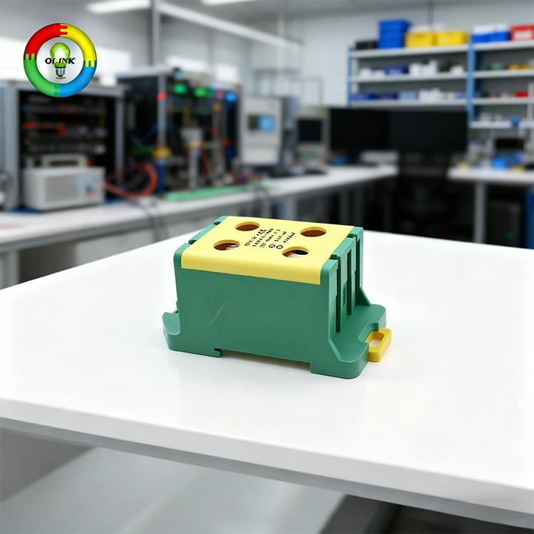 Bloque de terminales de tornillo para carril DIN OLINK UTJ5 de alimentación industrial - Contactos de aluminio, 220 A, barra colectora de plástico