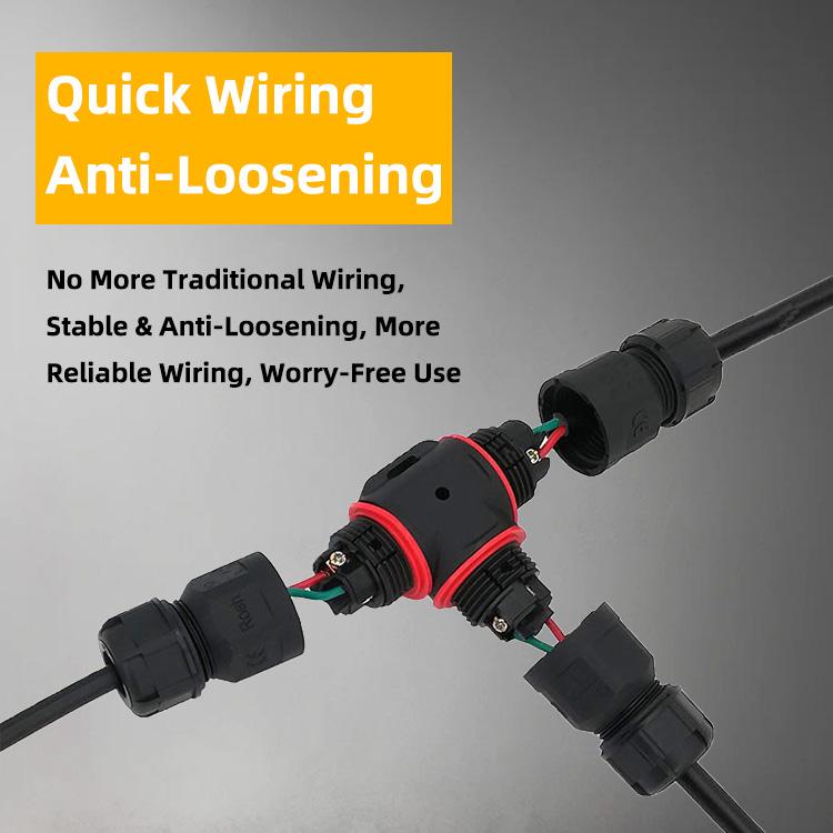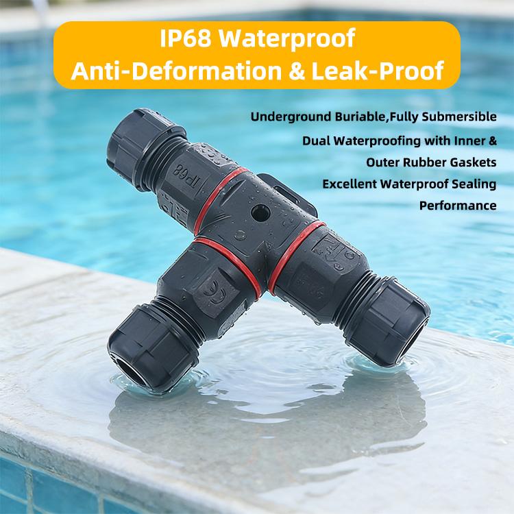 Los conectores en T se utilizan principalmente para la conexión de diversas lámparas de exterior, fuentes de jardín, obras de construcción y bombas de agua y otros circuitos.