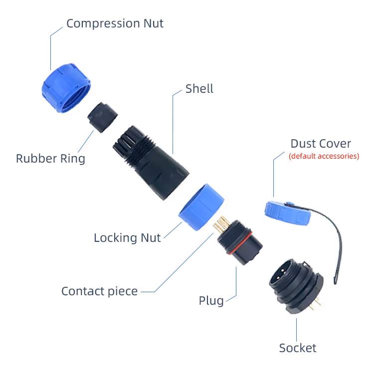 Los conectores se pueden utilizar para conexiones de cable a cable (en línea) y de cable a montaje en panel. Cada lado puede ser de contacto macho o hembra (versiones de enchufe o enchufe), las tapas de sellado IP68 están disponibles tanto para el conector del cable como para el conector del panel.