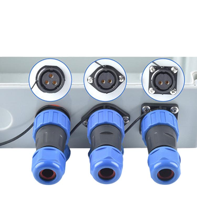 Conectores enchufables impermeables SD28 es un conector de cable impermeable IP68 de carcasa de plástico de gran tamaño. El usuario puede conectar los cables al conector presionando el tornillo &.